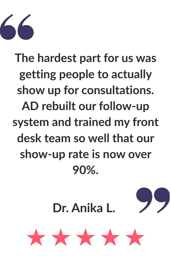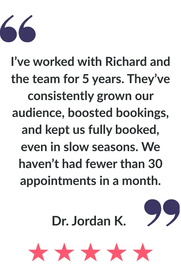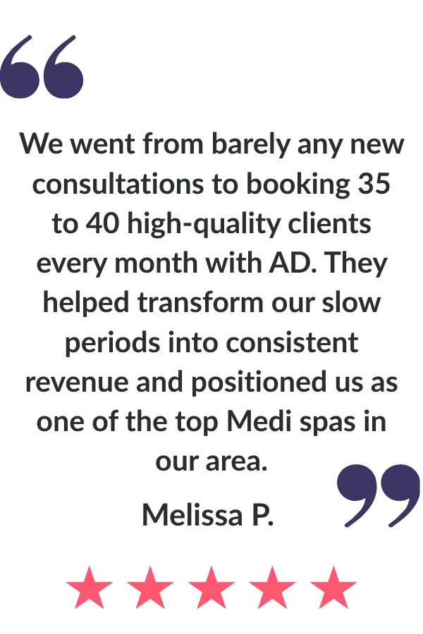 We work with dentists, real estate firms, spas, national brands, and fitness franchises. That diversity gives our Medi spa clients a major advantage because we know what works across multiple industries, not just aesthetics.