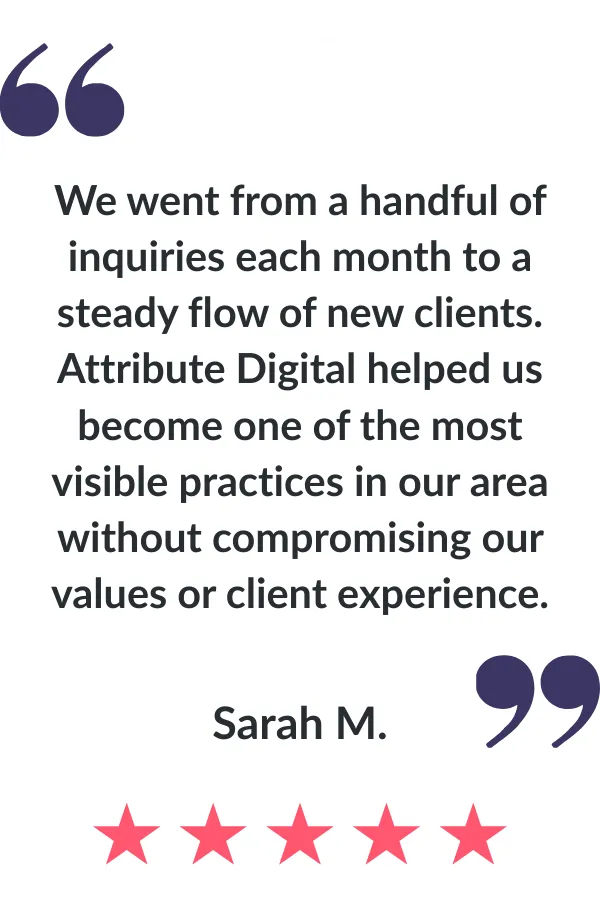Your practice, and the people seeking your help, deserve more than quick wins, inconsistent visibility, or DIY marketing tactics.